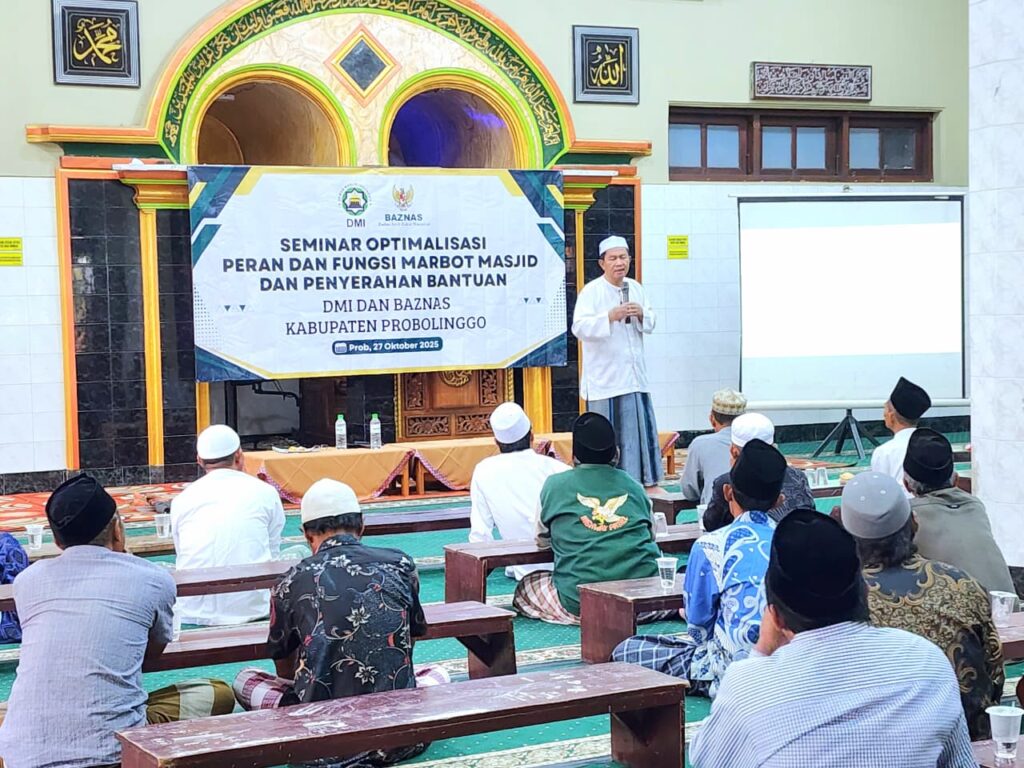 Probolinggo, 27 Oktober 2025 – Badan Amil Zakat Nasional (Baznas) Kabupaten Probolinggo bekerja sama dengan Pimpinan Daerah Dewan Masjid Indonesia (PD DMI) Kabupaten Probolinggo menggelar kegiatan mulia berupa Seminar Optimalisasi Peran dan Fungsi Marbot Masjid sekaligus Penyerahan Bantuan Santunan bagi para marbot masjid.